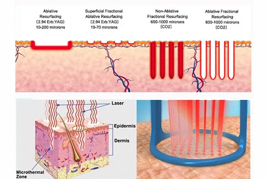 このレーザー技術は、皮膚に微小な傷を作り、体の自然な治癒プロセスを刺激し、新しく健康な皮膚細胞の成長を促進します。深い傷跡や色素沈着に非常に効果的です。