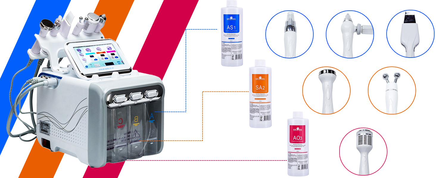 Aquafacial セラムセットには、AS1、SA2、AO3の3本が含まれており、それぞれ異なるスキンケアニーズに対応しています。