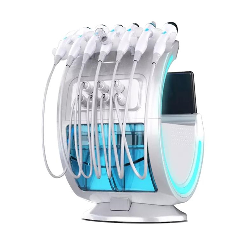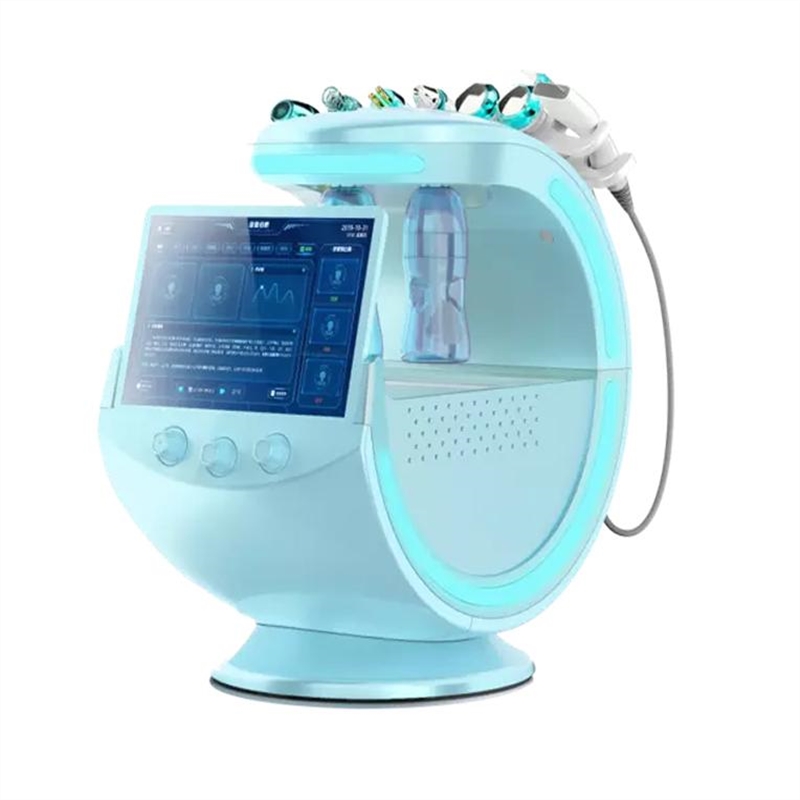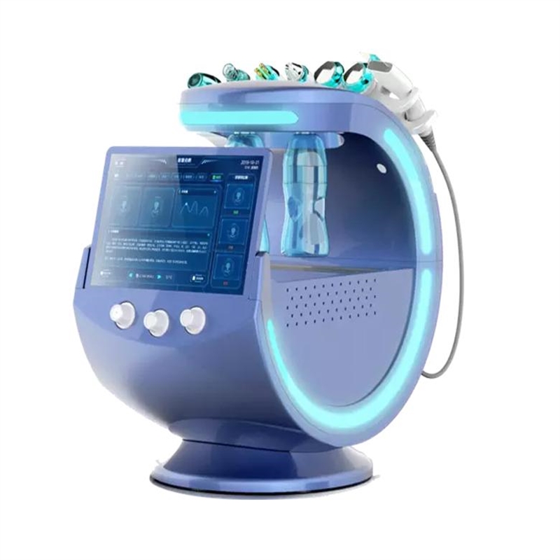 スマートアイスブルーハイドロダーマブレーションマシンは、インテリジェント管理システムを備えています。超音波スクラバー、スプレーガン、ダーマブレーションペン、RFプローブ、超音波プローブ、コールドハンマー、肌モニタリングカメラを含む7つのハンドピースがあります。このマシンは、黒ずみ除去、毛穴の縮小、保湿、肌の引き締めとリフトアップ、肌状態の検出とモニタリングなど、複数の美容効果を実現できます。顔認識でログイン可能で、診断結果を保存できるインテリジェントクラウドデータベースを備えています。